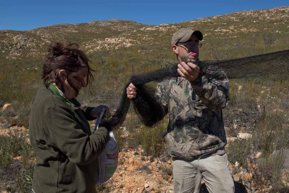 Lou and Alan sorting mist nets