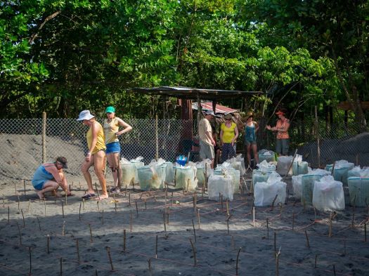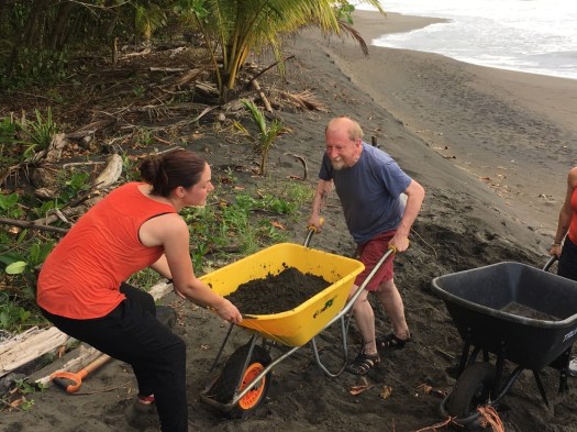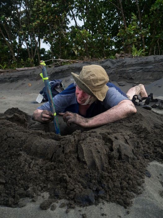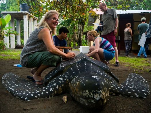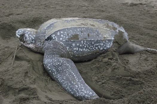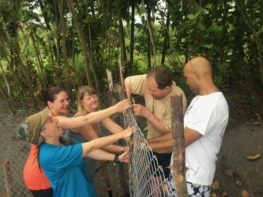 The last few days of the expedition have been busy! Teams from the night patrols have been bringing eggs back to the hatchery every night. Rosalyn and Frank encountered a turtle with missing back flippers “We had to help her dig the nest” says Rosalyn, “they have apparently encountered her before and her nickname is stumpy.” Leatherback turtles come ashore to lay eggs six to eleven times in a season, but only nest approximately every three years.