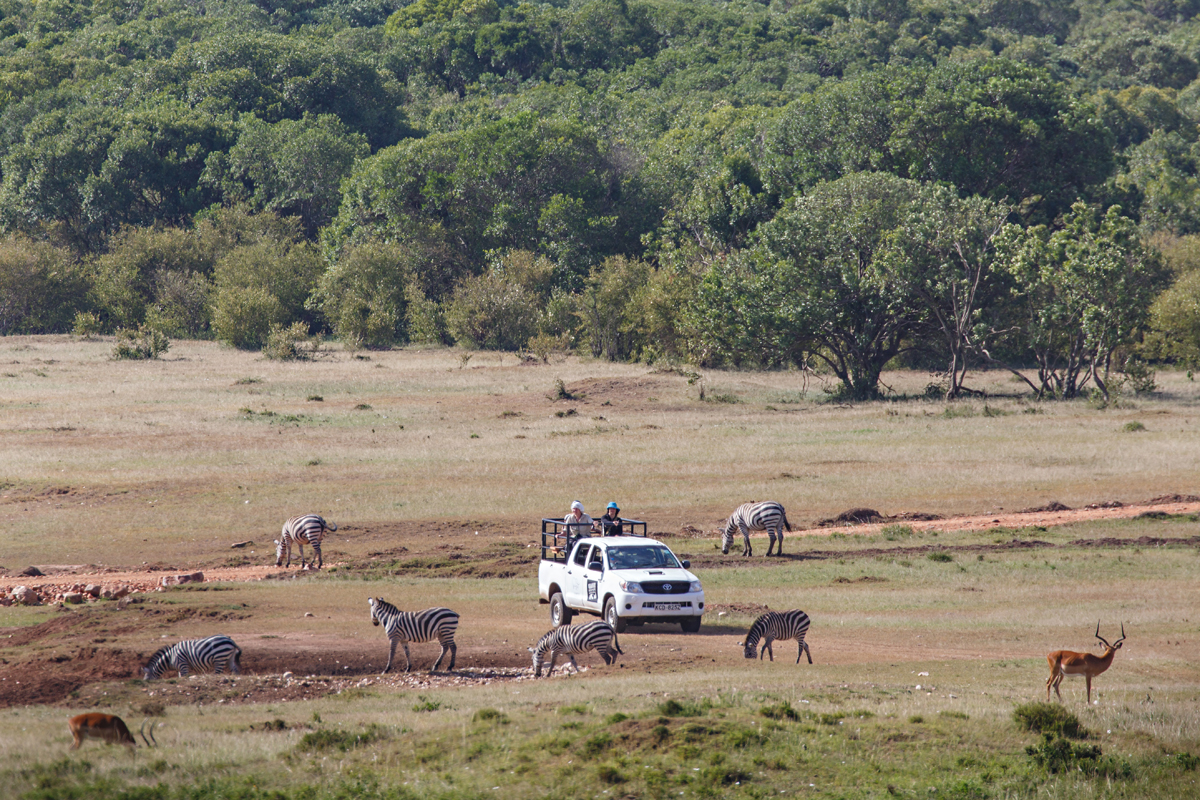 Group 2 completed 14 vehicle and 6 walking transects, 3 point count observations from Kileleoni hill and 20 four hour shifts of waterhole observation. During the vehicle transects, 619 observations were recorded in 43.5 hours on the activity (218 person hours) and a total number of 4,541 animals from 28 different species were counted. 23.5 hours were spent on the walking transects (141 person hours), where 59 observations were recorded and 293 animals from 21 species were counted. In 3 hours (18 person hours) of point count observations, a total number of 99 animals of 9 species in 20 observations was recorded. The team spent 78 hours observing the Memusi dam waterhole (179 person hours), counting 413 animals of 11 species over 246Â observations.