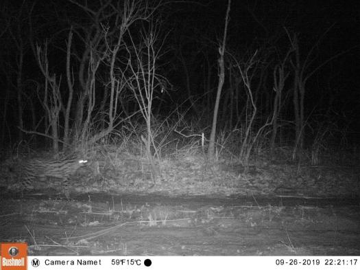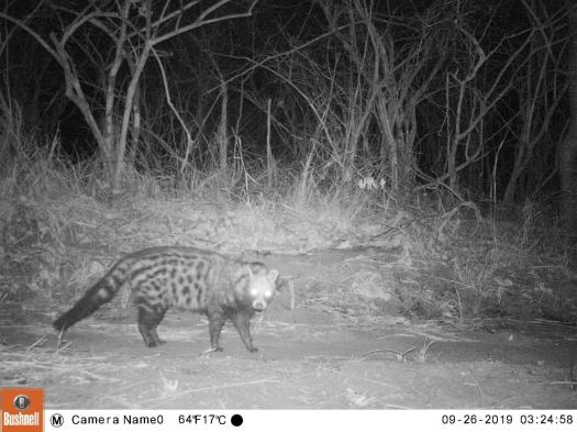 24 camera traps were out for nine nights each in the southern half of the reserve. We found animals on 1500 pictures, identified 23 different species, including 7 carnivores and one big cat: a leopard. Other species were genet, civet, serval, caracal, proqupine, spotted hyaena, honey badger, water mongoose, ground hornbill, duiker, hippo, elephant, yellow baboon, vervet monkey, bushbuk, guinnea fowl, kudu.
