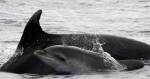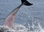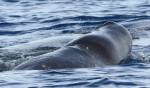 On 27 August the seas had calmed down quite a bit, so it was easier to observe the animals. In the morning, we had at least some of the same animals as yesterday to the north of Faial, including a fairly new baby that we hadn’t seen yesterday (but we didn’t see the mother either). In the afternoon, we went to the south of Pico, since the whales in the north had disappeared offshore too far for the vigia to see. “2578” of the Whitehead group was seen as well as a single milling sei whale and then a mother and calf sei whale. The calf was very interested in the boat, circling us several times, appearing unexpectedly behind us a couple of times. We also saw spotted dolphin in the morning and again in the afternoon, plus a large group of bottlenose dolphin with calves in the afternoon. We also came across the biggest sunfish that I have ever seen. The fin, looked like an orca dorsal cutting through the water!