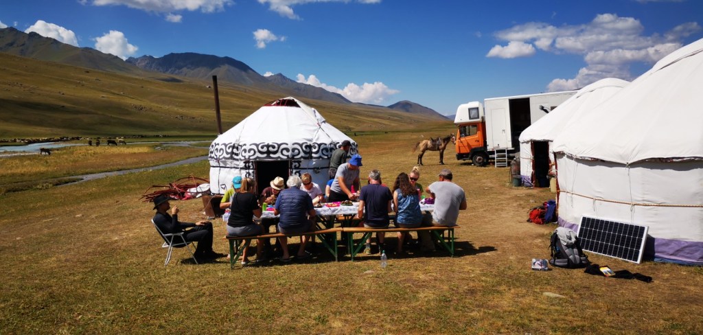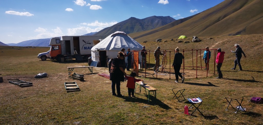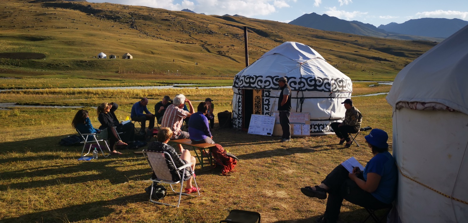In group 3 we have also continued our social research into attitudes to the opportunities of eco-tourism amongst the local shepherd families. This involves visiting our neighbours up and down the valley, in their yurts and tents, always being received with great hospitality and courtesy. With our multilingual Kyrgyz scientist Dr Taalai Mambetov acting as interpreter, our expeditioners interview the shepherds, loosely following a prepared series of questions, but largely enjoying a free-flowing conversation. The interviews gave us a good insight into the realities of shepherding life in the upper Suussamyr Valley – and a strong appetite to host adventurous tourists here in the future.