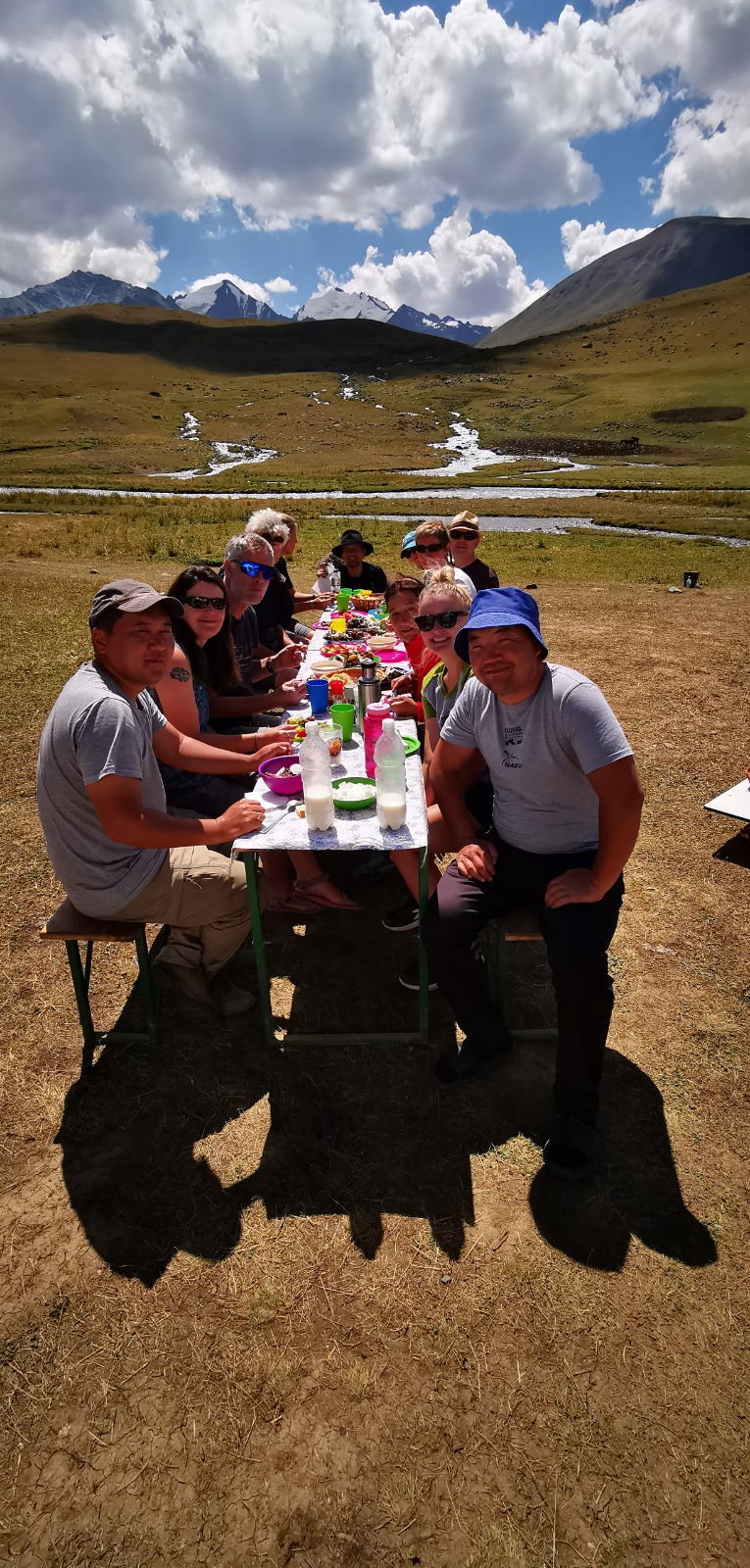 Group 3 started dramatically with a mountain storm erupting without warning within hours of the team arriving at base camp. 30 minutes of high winds destroyed one of our three yurts and many of our tents, necessitating two prompt actions – a hasty arrangement to hire a yurt from a local shepherd and a long drive back to Bishkek for expedition leader Roland to buy some more tents. Both missions were completed successfully. Then expedition leader Roland tested positive for Covid. Leading an expedition while self-isolating proved to be a novel experience, but group 3 was a strong and dependable team and the expedition continued largely as planned. Another expeditioner then also tested positive for Covid a day after Roland, but thanks to the implementation of our Covid protocol, the spread stopped there.