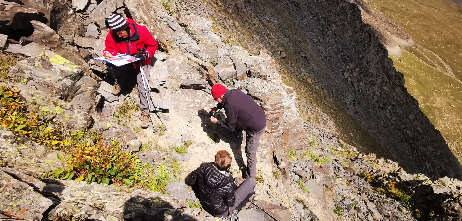 Despite these setbacks and some challenging weather in the first few days, the expedition team pulled out the stops and achieved some good scientific research over the two weeks. We visited most of the camera traps already located in the mountains, to replace SD cards and to retain, move or bring back each camera. We surveyed many 2×2 km cells – many of them covering new valleys we had not visited before. We saw ibex, high up on ridges. We discovered many instances of ibex footprints and scat and – excitingly – some snow leopard footprints too. We also found large carnivore scat on a few occasions.