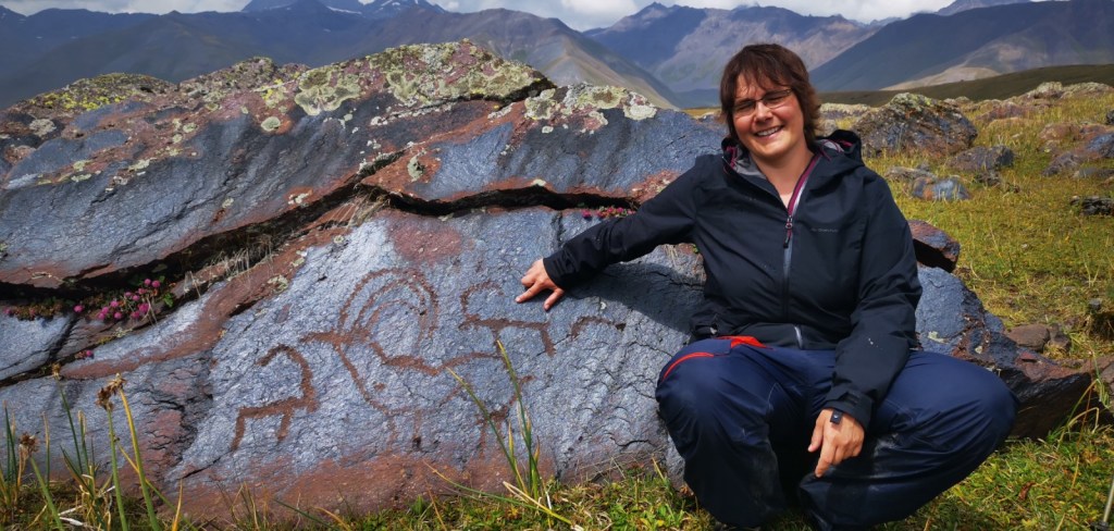 The 2022 Tien Shan snow leopard expedition has brought some memorable challenges but was ultimately very successful, with a total of 30 expeditioners achieving an impressive amount of citizen science over six weeks in Suussamyr Valley: We have surveyed seventy six 2×2 km cells, many more than once, collected six samples of likely snow leopard scat ready for DNA analysis, discovered three sets of photos of snow leopards on camera traps, found snow leopard footprints, seen herds of ibex on mountain ridges on several occasions and we have interviewed twelve local shepherd families. And alongside all this, we have immersed ourselves in the wild mountain environment, scrambled up rocky ridges, seen a lot of local wildlife, discovered ancient and intriguing rock art, watched crazy games of ulak (the national sport of Kyrgyzstan, with horse riders fighting over a goat carcass, in a mad chaos of hooves and mud) and made new friends.