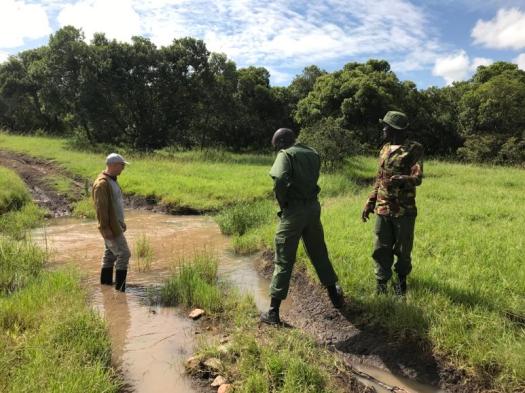 While a team of four including Alan went for a bird & mammal mapping drive into Mara North conservancy on the day off on Friday, Peter G., Michael, Ralf and Monika spent their day with road repairing together with rangers Albert & Dapash. Car loads of stones were collected and dropped into the most treacherous deep mud holes at a key spot all cars have to pass to get out on their activity. Great job, guys and a big thank you from all of us!
