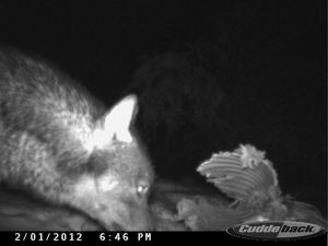 Tomas went out with James and Marcel to collect some camera trap memory cards. Apart from approximately 170 pics of a jay (Garrulus glandarius) getting fat on a deer carcass we photographed a wolf and a common buzzard.