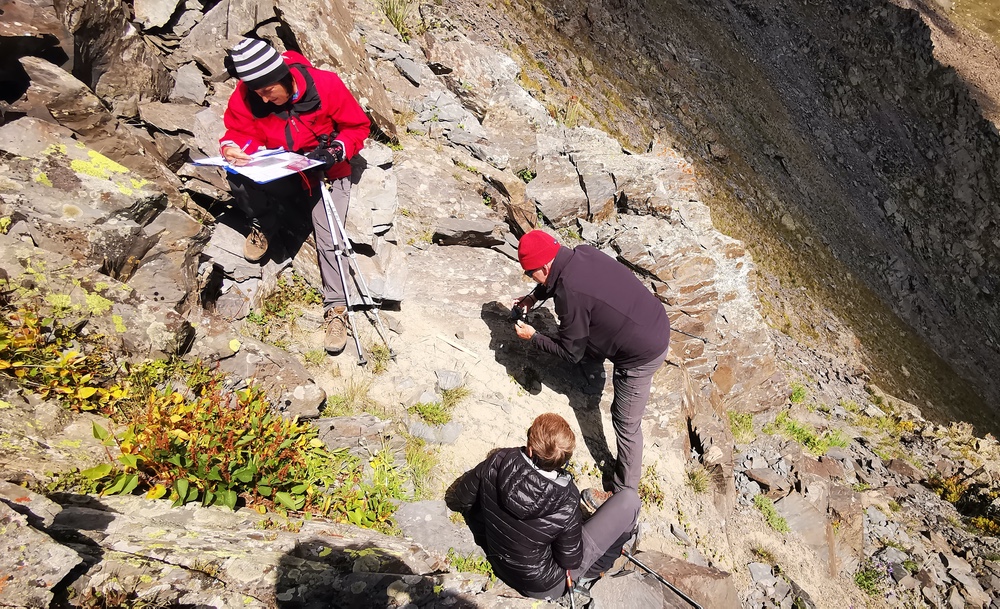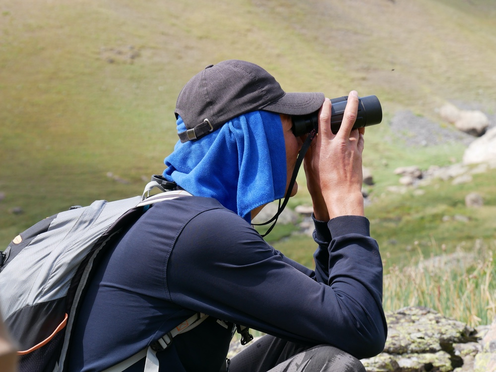 The 2022 expedition ran between 11 July and 20 August 2022 and was supported by an experienced ranger as well as members of the NABU anti-poaching patrol, Gruppa Bars. The core research task comprised a number of small teams surveying different parts of the Karakol valley and its side valleys, up to an altitude of 4000 metres, recording any signs of the snow leopard or its main prey species – ibex, argali sheep, Himalayan snowcock and marmots. The types of signs that were searched for included direct sightings or audible calls of the animals, footprints, scat and fur. In each case, the location of the sign was recorded.