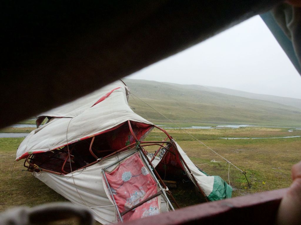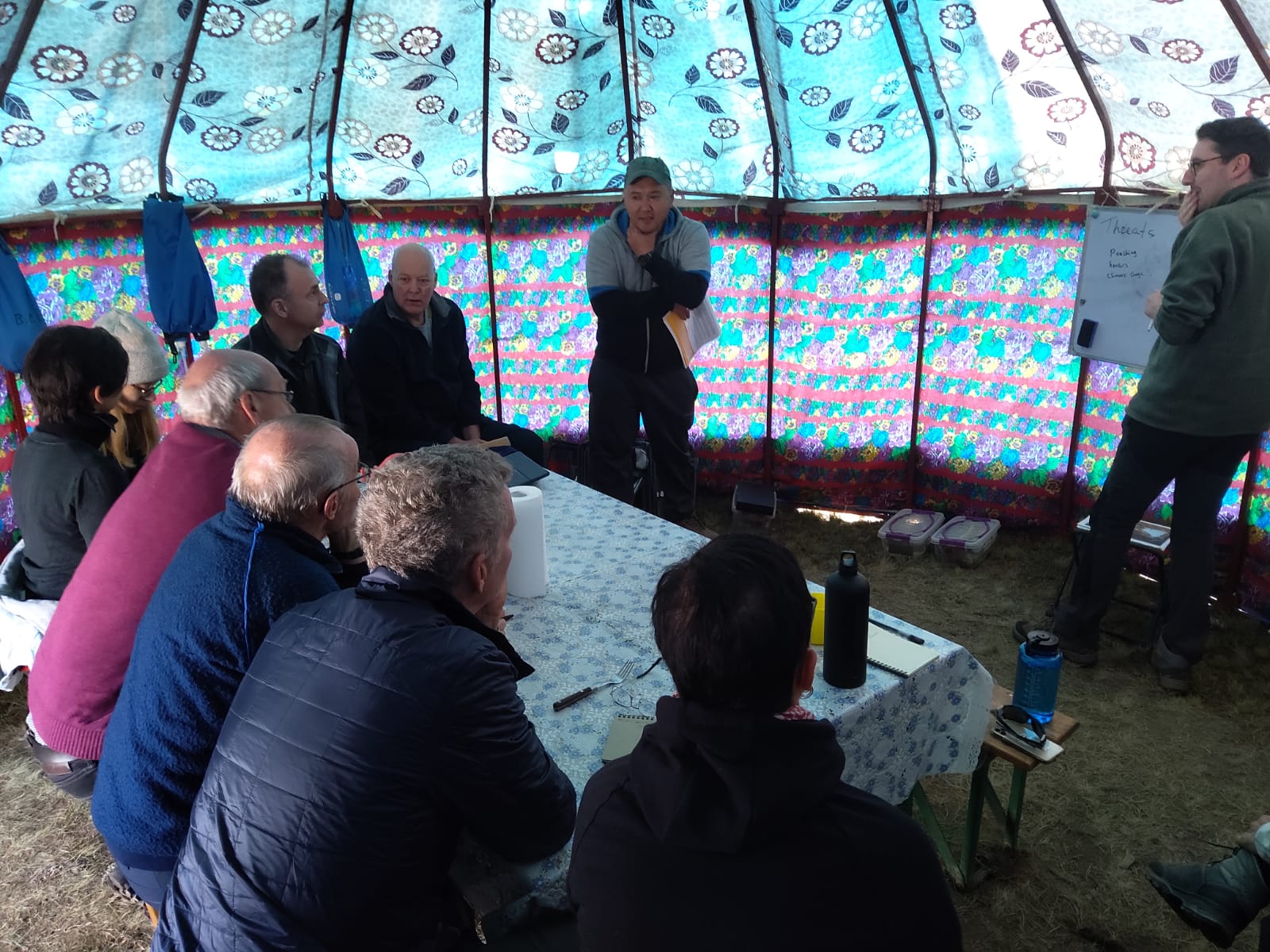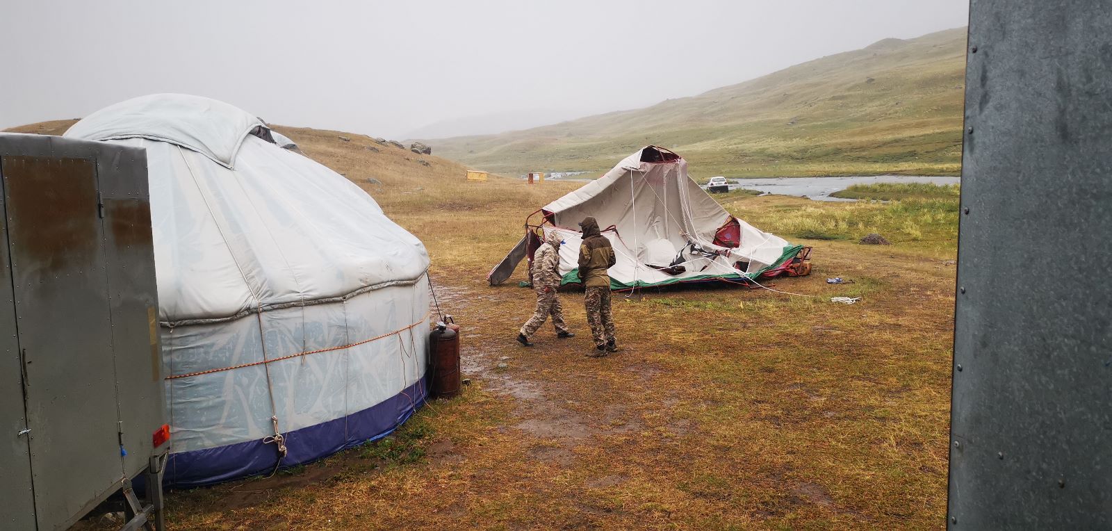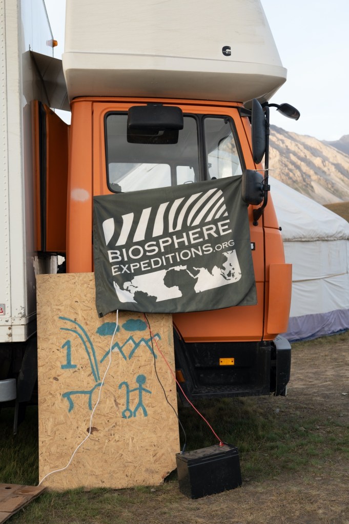 Henry gab uns kurz eine Einfรผhrung in das Camp: Toiletten, Duschen und die drei Jurten. Eine der Jurten war die Kรผche und damit das Reich von Azman, unserm Koch. Eine andere war unser Aufenthaltsraum, in dem gegessen wurde, unsere Besprechungen stattfanden und natรผrlich das gemรผtliche Beisamensein abgehalten wurde. Auรerdem gab es noch einen uralten NABU LKW, in dem die Ausrรผstung verstaut wurde. Dusche und Toilette hรถrte sich super an. Tatsรคchlich waren es vier kleine Holzhรผtten.