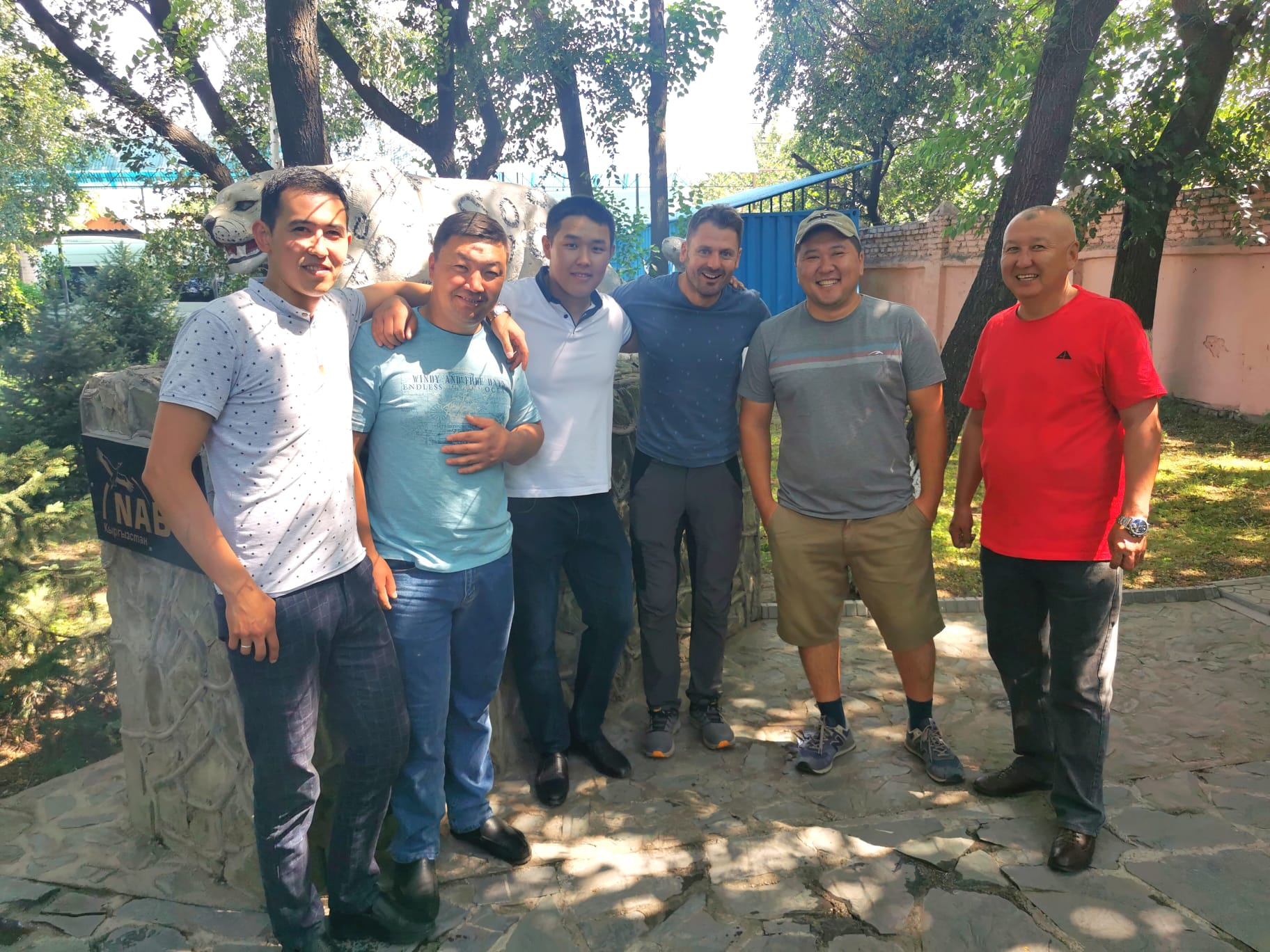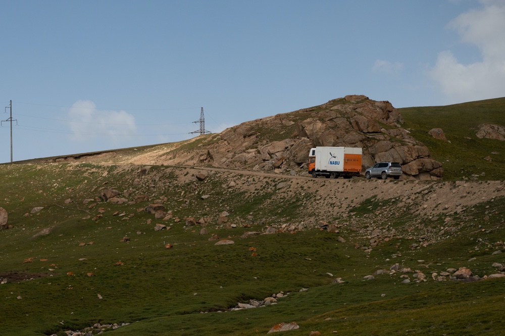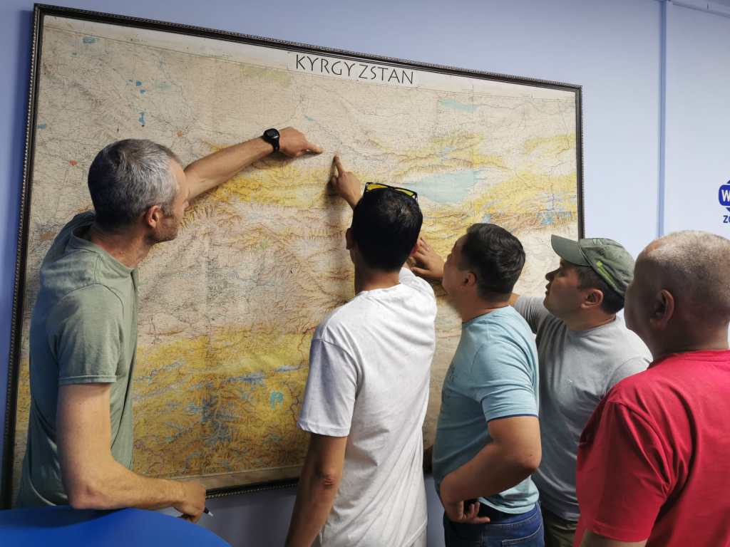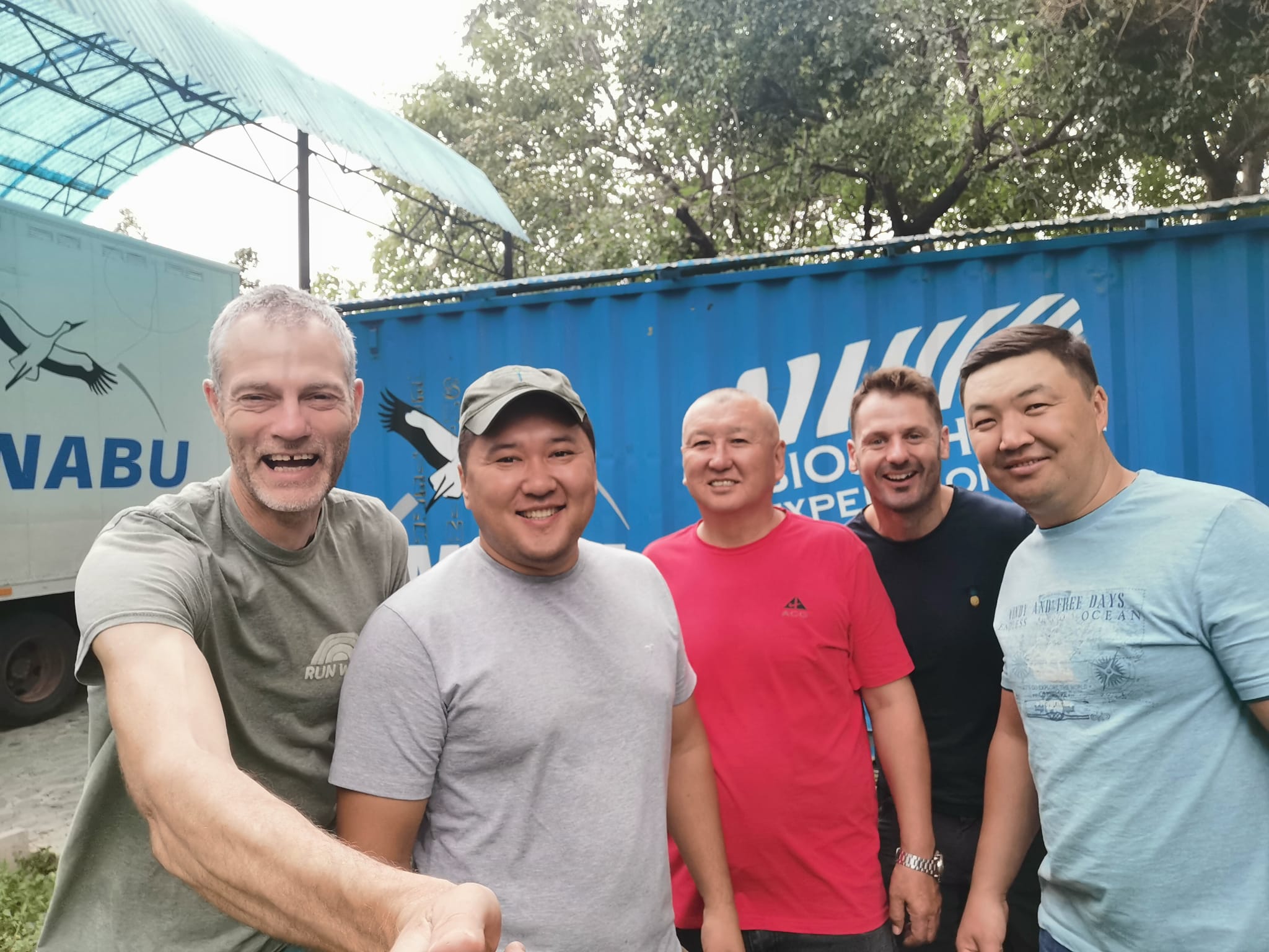 Am nรคchsten Morgen fanden sich alle Teilnehmer der Expedition drauรen vor dem Hotel ein. Henry, der Leiter der Expedition, und Taalei, der die Expedition wissenschaftlich begleitete, Ibrahim und Ayan vom Team NABU Kirgisistan nahmen uns in Empfang.