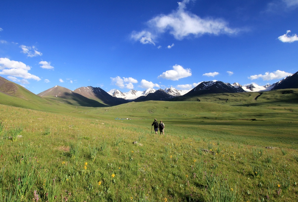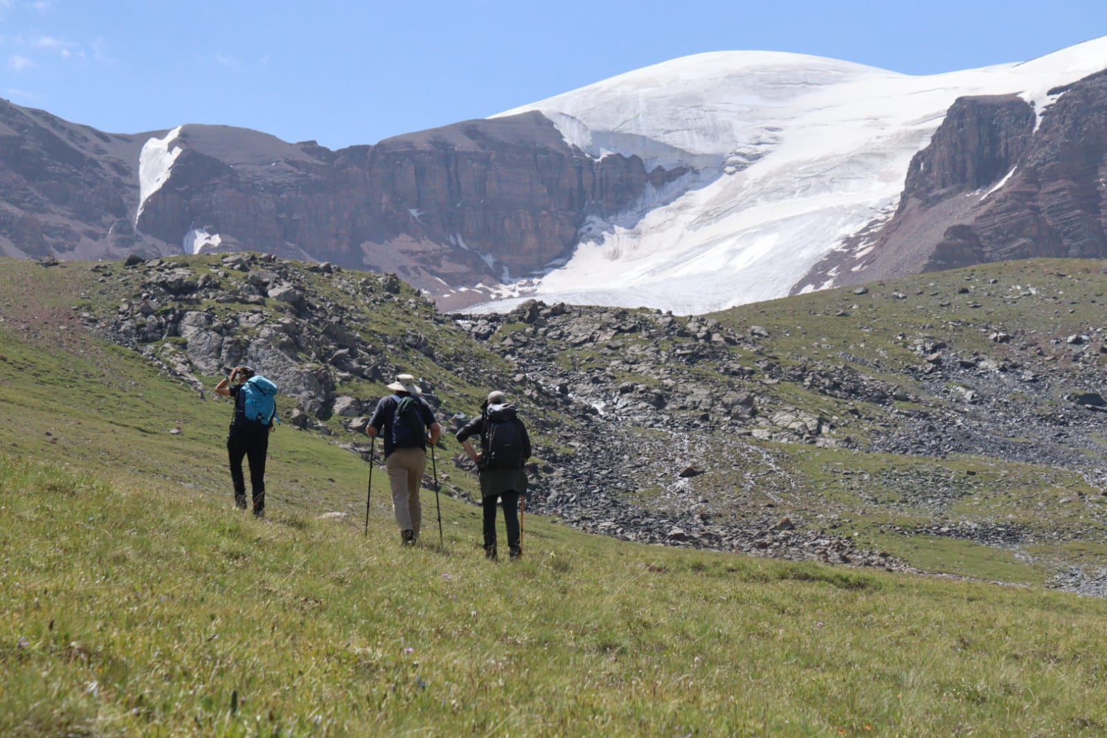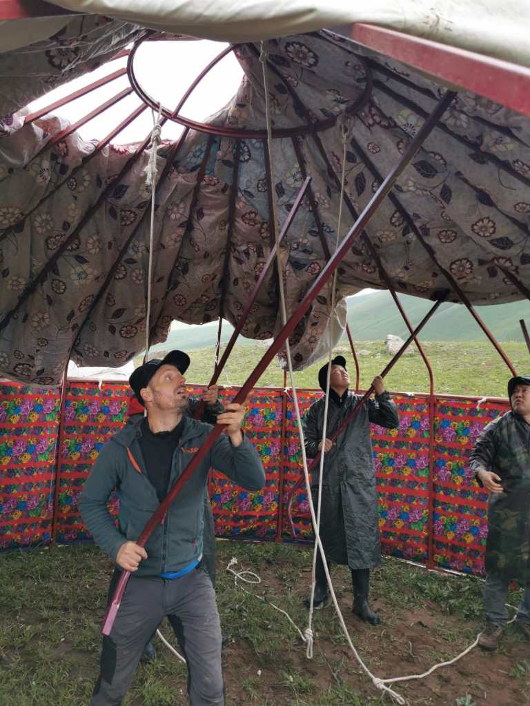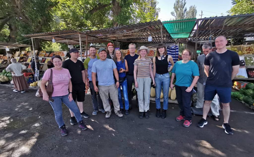 Am nรคchsten Morgen fanden sich alle Teilnehmer der Expedition drauรen vor dem Hotel ein. Henry, der Leiter der Expedition, und Taalei, der die Expedition wissenschaftlich begleitete, Ibrahim und Ayan vom Team NABU Kirgisistan nahmen uns in Empfang.