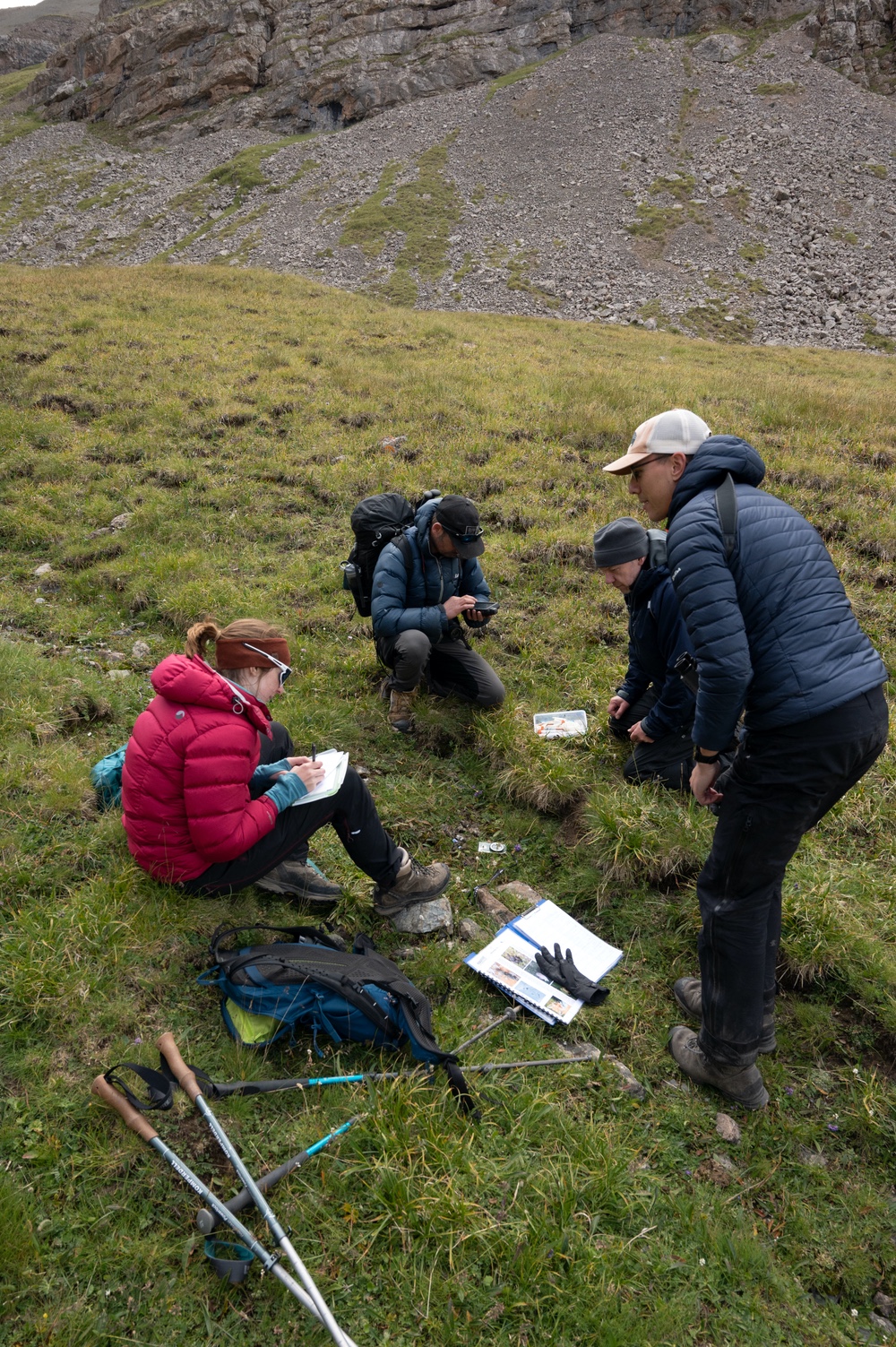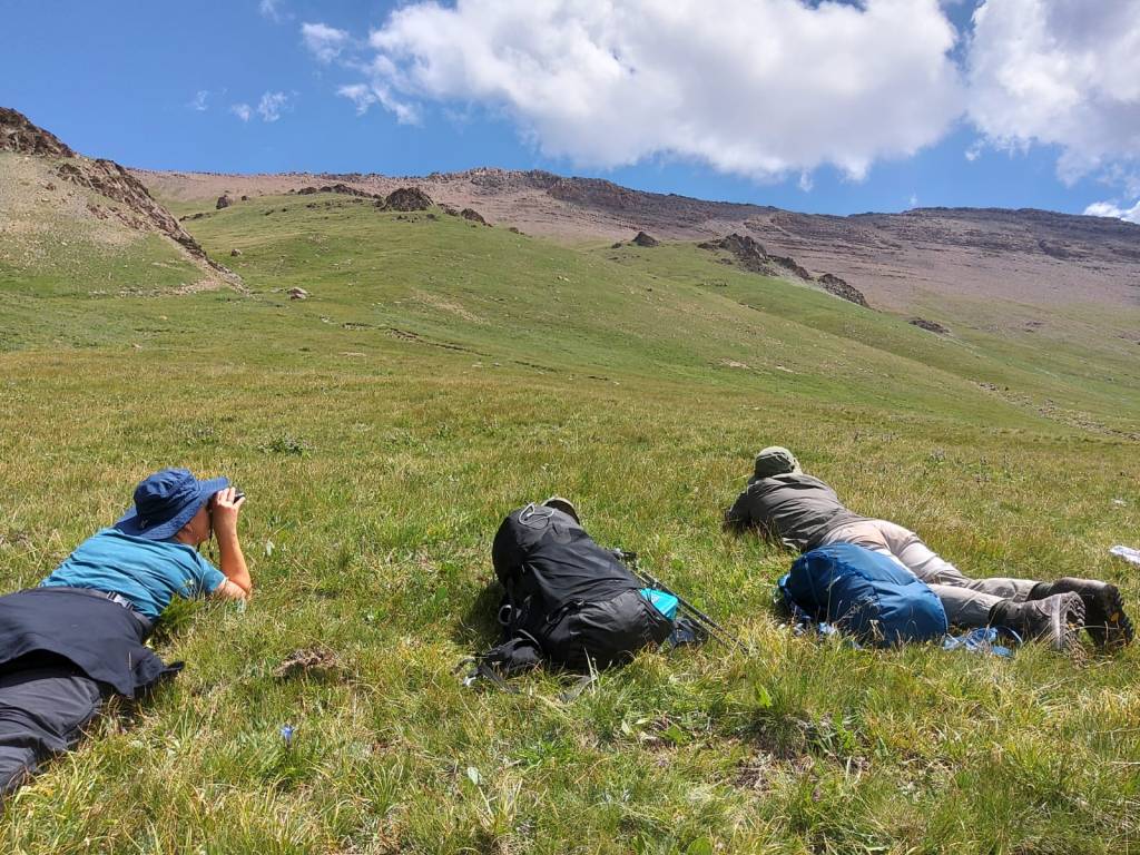 Leider war ich vom Vortag noch so erschรถpft, dass ich wieder nicht bis zum Bergkamm kam und mit Spencer ein Stรผck zurรผckblieb. Zur รberraschung fanden Ayan, Alex und Mel wieder auf einen Kamm die Markierungen und Losungen eines Schneeleoparden. Wie auch zuvor wurden natรผrlich DNA- Proben von den Losungen genommen.