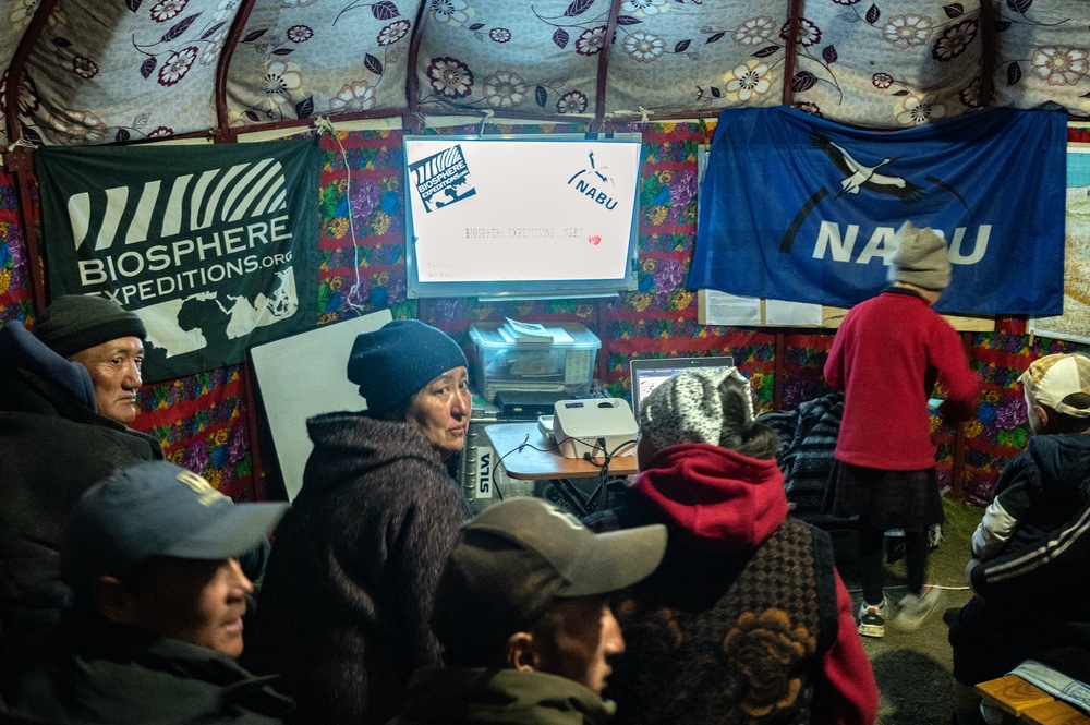 Taalei fรผhrte uns in die Forschungsausrรผstung ein. Alle Entdeckungen musste ordentlich mit den neuen Tabletts fotografiert und eingetragen werden. Anzeichen von Schneeleoparden mussten im Tablet und im GPS gespeichert werden. Wir alle wussten nicht, wie bald dass passieren wรผrde.