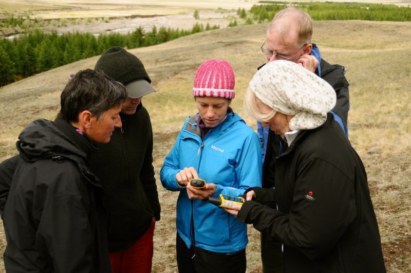 The next day (24 June) we went for a scouting drive of Sailugyem and Chikacheva range. We parked the Land Rovers on one of the ridges and took a walk to nearby lakes, still filled with blue ice. We found ibex footprints all around and spotted some very agitated shell ducks and young imperial eagles. But the best was yet to come. On the way back to camp, we noticed some shapes running across the steppe and shortly afterwe realised that they were wolves! We followed in the cars at a respectful distance and were very pleased to see them disappear into the forest next to base camp. New neighbours! When the other neighbours (camels) came by for a visit later, eagle-eyed Debra spotted a lone wolf standing nearby, watching the camels intently. We were hoping for wolf howls in the night, but it was all quiet on the Altaian front.