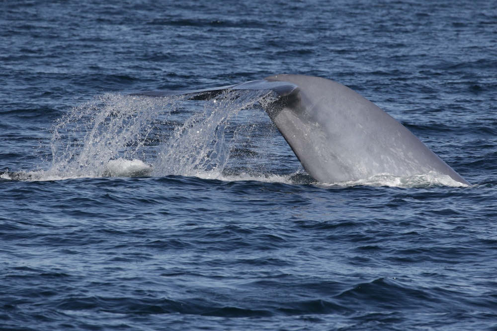 Our luck then improved further, with a โrandomโ blow sighted, which of course turned out to be yet another blue whale. And during the course of obtaining the required ID pictures (great job Pixy), a second blow was spotted, but heading into the worsening seas, so we gave no chase. Whilst waiting to photograph both sides of โourโ blue whale, we spotted a โstrangeโ looking, almost leucistic gull. With images circulated to bird groups, it transpired that it was an Icelandic gull – a rarer visitor to these waters, normally seen in very low numbers over winter.