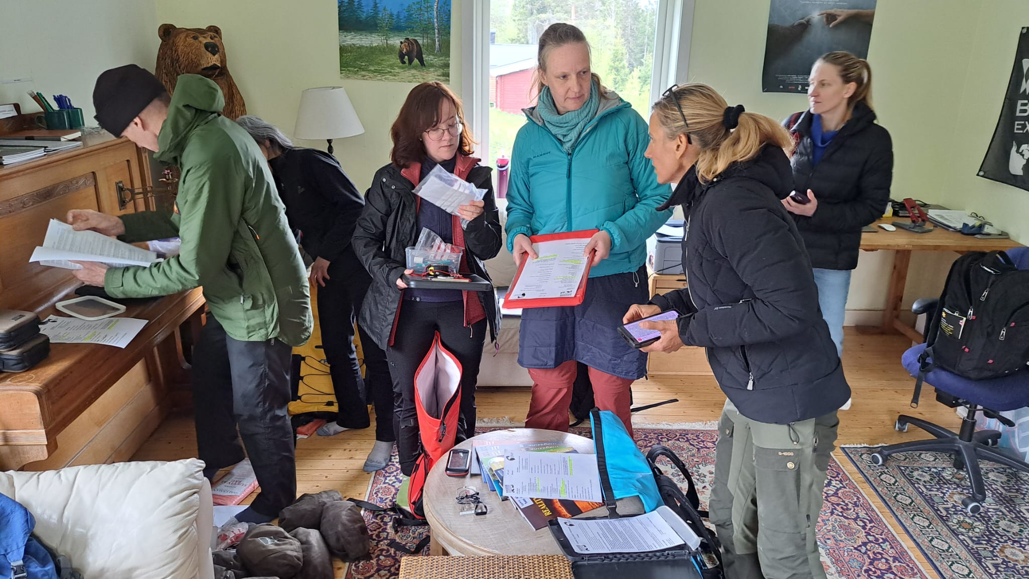 We’re off with everyone here. After some “express-incheckning” in Mora we proceeded to the expedition base and went straight into training for the rest of the morning and early afternoon: What the project is about, why citizen science is so important to it, how the bears are doing, what we will be doing, how to use a GPS & compass, how to pack your research bag and more.