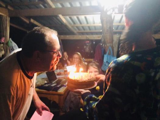 We celebrated Neil’s birthday on Wednesday evening. Talia prepared a delicious homemade cake, which was presented after dinner. Thank you, Talia, for doing so, and thank you, Neil, for sharing it with us!