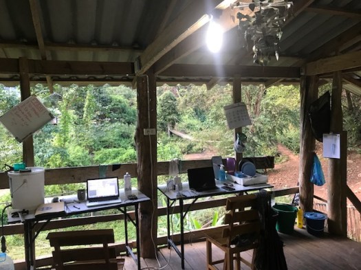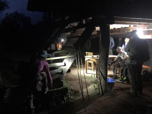 Today (Thursday) we went for the first out of two early shifts. Leaving base before sunrise, we very much enjoyed the 90 min walk along the river watching the sun come up and slowly dissolving the mist. For the first time during this week the sky was clear blue and the sun pushed the temperature up and over thirty degrees. Keep your fingers crossed that we won’t get any more rain!