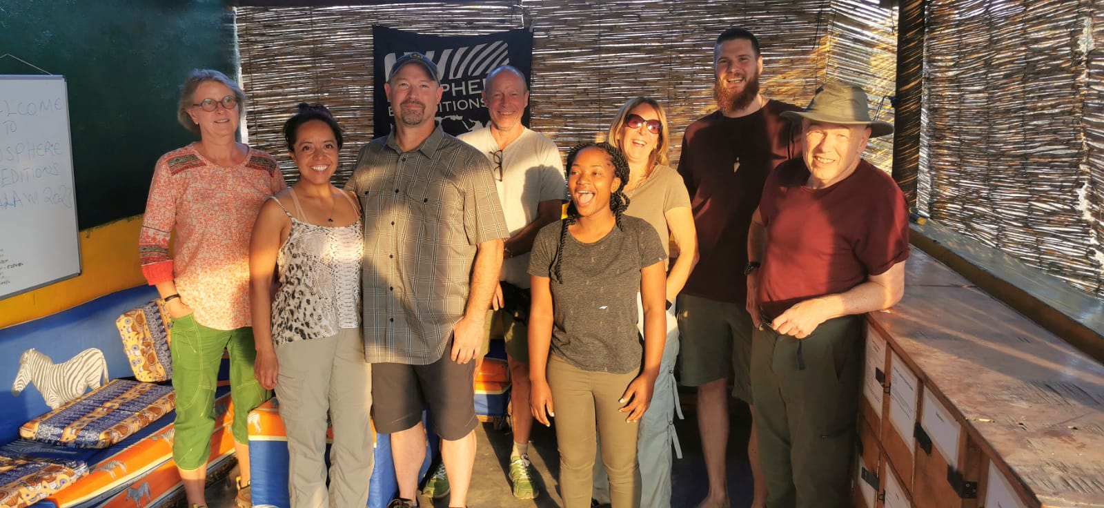 The team arrived at base camp on Sunday evening, after a long drive from Lilongwe, on time, in good spirits and with everyone accounted for. This is always a moment of relief for the expedition leader. The team was also rewarded with the sight of a small family of elephants wandering across the riverside right in front of us under the warm evening sun.