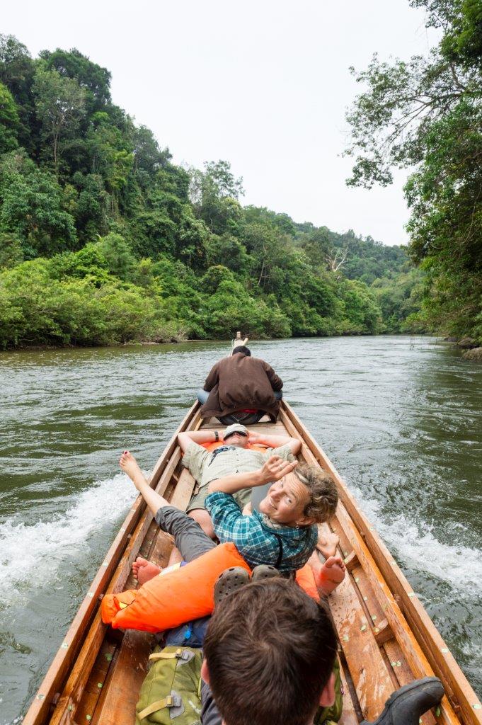 The 2016 expedition is wrapping up and we have just arrived back in Pekanbaru after 12 nights in the field. The second group enjoyed brilliant blue skies and endless sunshine throughout their stay in Rimbang Baling reserve. This was great for afternoon swims in the river and everyone’s skin has turned golden. However, the lack of torrential downpours that the first group experienced means the river level has been very low. Going upriver has been slow and a lot of hard work, we often had to get out of the boats and push them across shallow rocks or walk along the shore while the boat driver worked hard to get the boat up the shallow rapids. What a couple of weeks ago took an hour to travel took us over two hours. It meant long days and everyone worked hard to get back the camera traps and survey the rainforest.