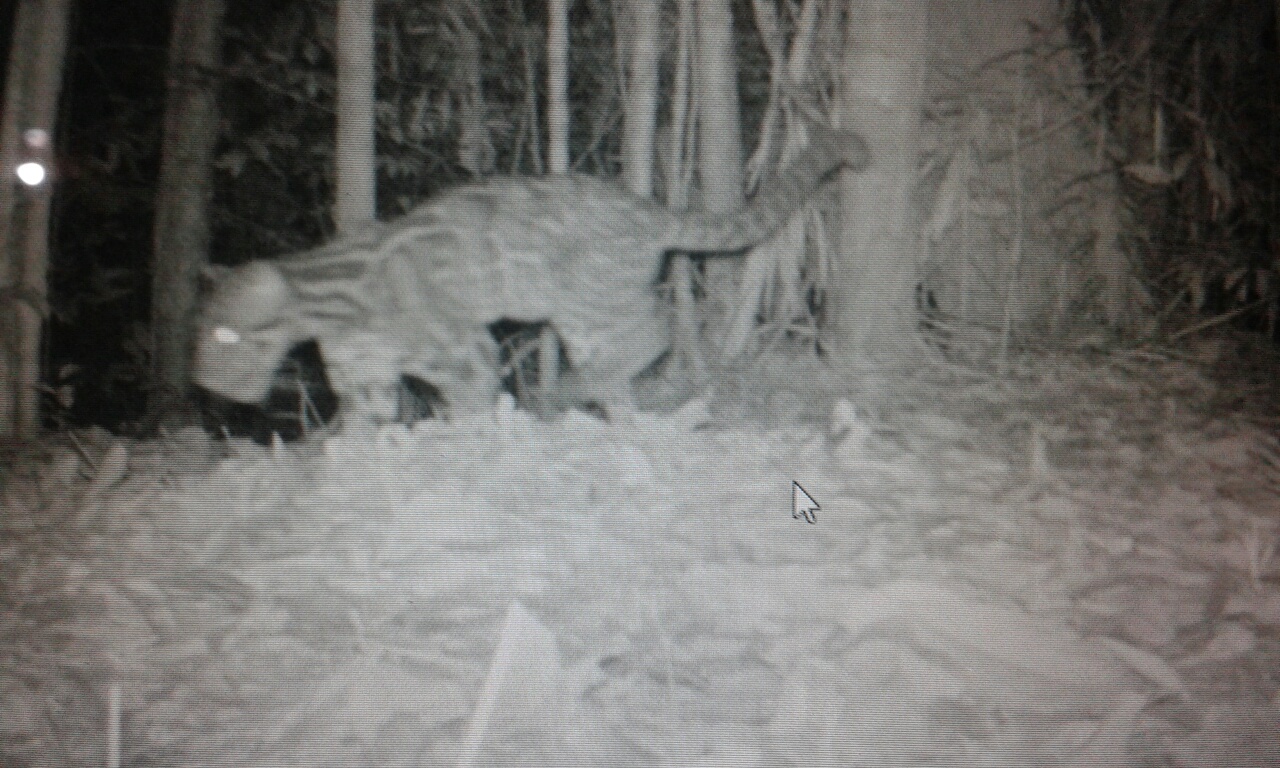 With 265-camera trap nights behind us, there have been some interesting results from the cameras we have collected. Clouded leopard, leopard cat, Malayan sun bear, binturong, yellow-throated marten, pig-tailed macaque, long-tailed macaque, barking deer, wild pig, and other animals. But sadly the extent of human impact within the wildlife sanctuary is unrelenting. We have caught on film people trying to kick our cameras off trees, in one case stealing the camera. Catching birds to sell in the villages. On the retrieval of one camera, the whole area leading up to it was cut down in the two weeks the camera had been in place. The loggers had not noticed the camera as they dragged timber past the traps we had set for the animals.