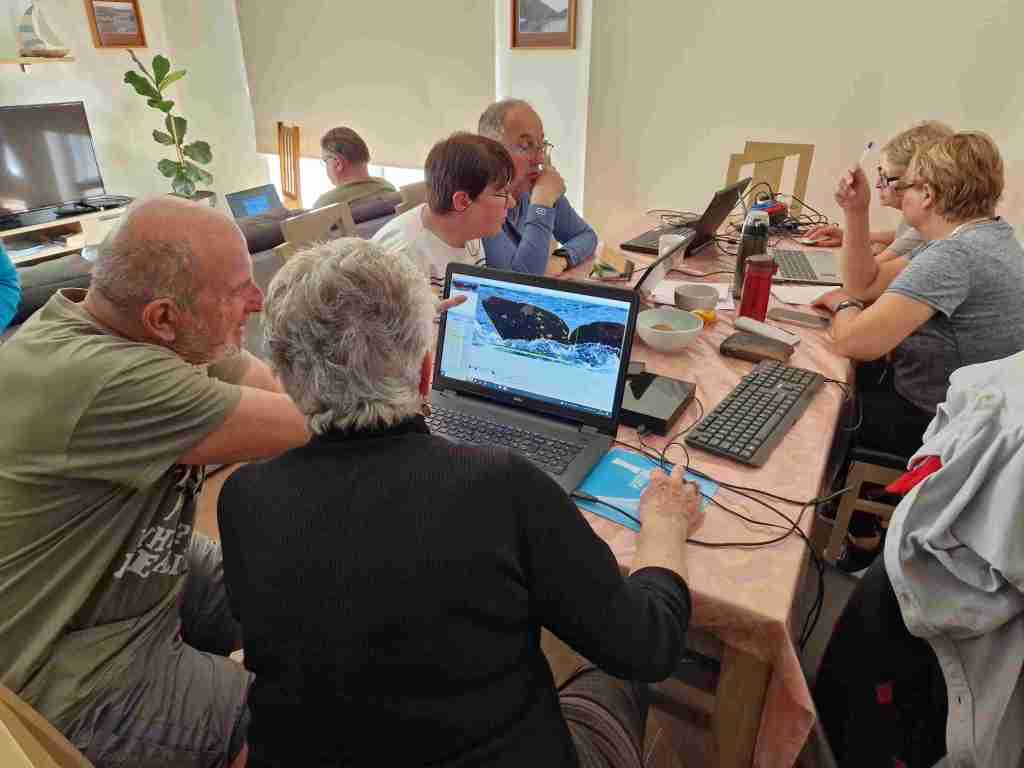 Having said this, shore days provide a good opportunity to learn about cetacean photo-identification. Half of the team focused on matching sperm whale flukes using the Flex, Europhlukes Match, and Happywhale algorithms. Meanwhile, the other half meticulously sorted through our Rissoโs dolphin shots to determine the number of individuals in each group. This preparation is needed before going through the existing local Rissoโs dolphin photo catalouge. Step by step, these matches unveil insights into the life history, migration patterns and group sizes.