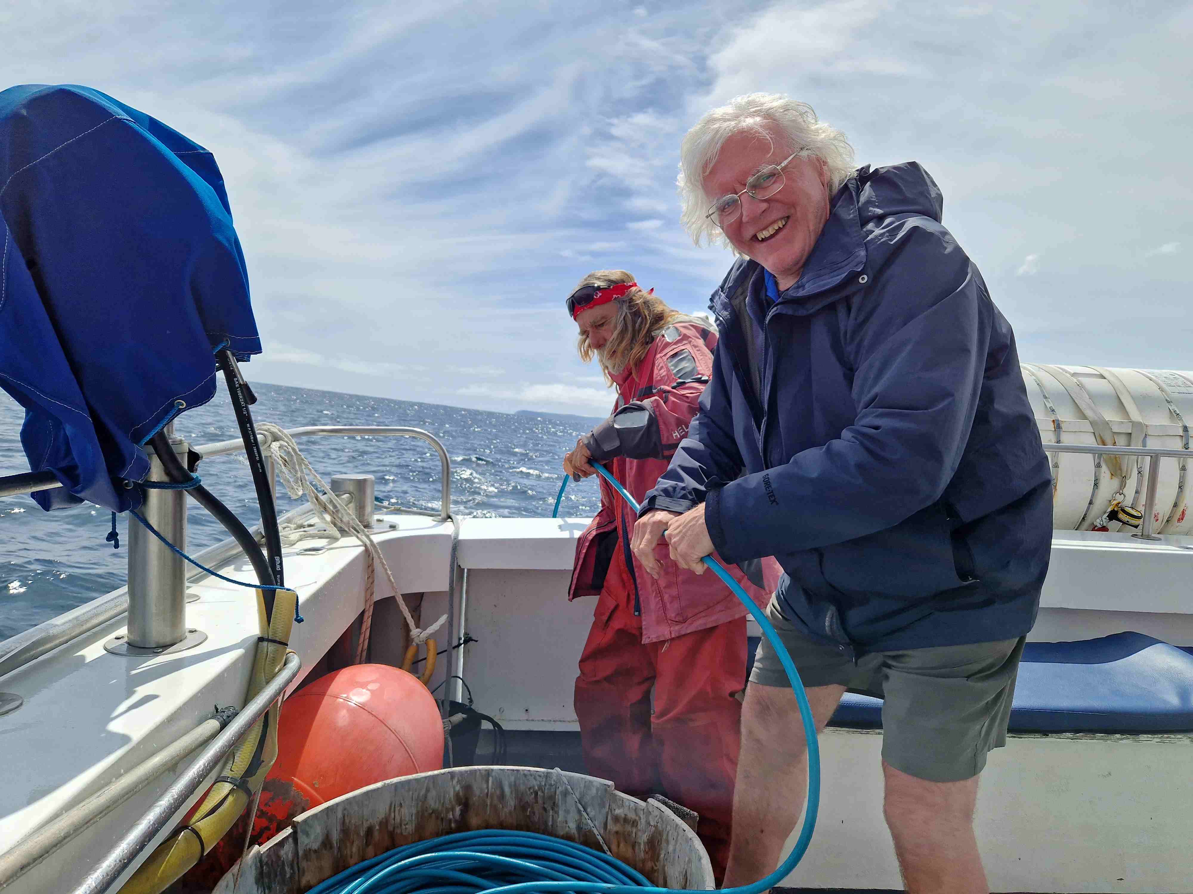 On Tuesday high waves and strong winds were prevailing, but given that the weather forecast for the whole week was looking grim, we decided to give it a go in the morning anyway and find a bit of shelter north of Faial. Quickly, it became clear we were not going to venture out very far from the coast; our balancing skills were put to the test, no railing on the boat was left unexplored and all waterproofs were deployed, for the data sheets, gear and expeditioners.
