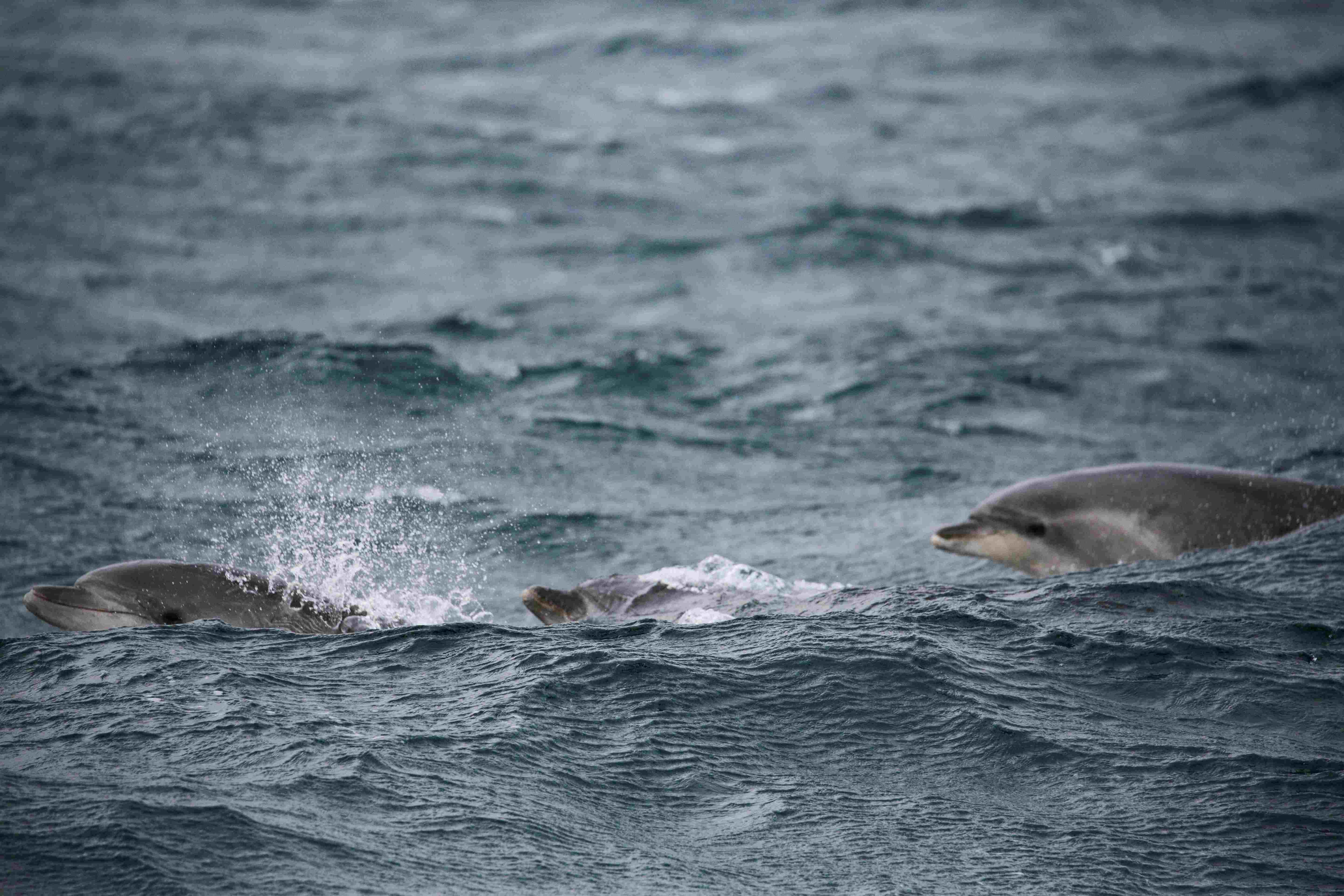 On Sunday the Physeter was the only boat heading out, because โฆ you guessed it right โฆ of the rough weather. No longer phased by this, we collected more data regardless. We saw a large group of bottlenose dolphins were socialising, including leaps, splashes and lots of surface activity, ideal for taking a closer look.