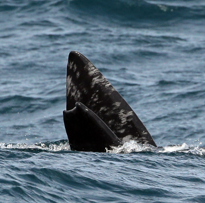 The team was determined to go out on Saturday, even if the sea was at its roughest, with the catamaran dancing on the waves, lots of sea spray everywhere and very high waves. Everyone was confined to the upper deck to keep safe. With help from the on-land lookouts or โvigiasโ we were treated โฆ.at last โฆ. to three sperm whale sightings. The first glimpses of our priority species this season! Only one, a subadult male, fluked and then disappeared rapidly behind a high wave. Given the conditions, it was quite an achievement to get one good photo-ID shot. After spotting some more bottlenose dolphins, we returned to base.
