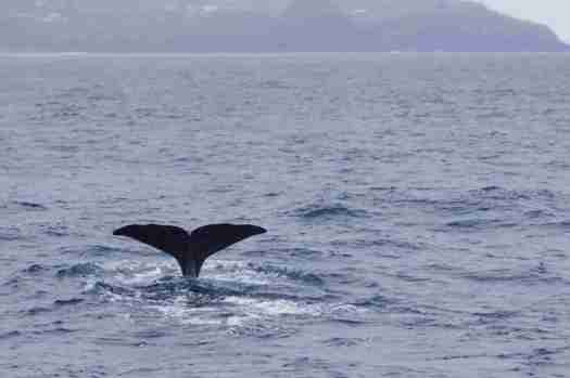 We were unsure about heading out to sea on Saturday morning as strong winds enveloped the island. Fortunately, our experienced skipper Norberto had a plan. Passing the stormy channel between Faial and Pico on Picoโs southern side meant we were sheltered from the strong winds.