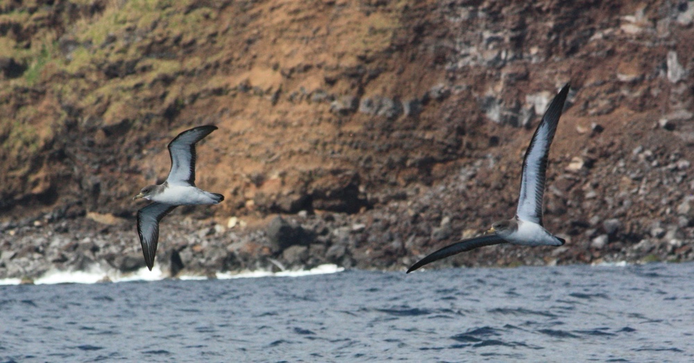 Wednesday, we had an early start leaving the harbour at 08:00 trying to put in a few hours of monitoring before the weather map turned โpurpleโ with wind gusts up to 90 knots and 5โ6 metre waves. We ventured eastwards of Faial and then up north and found part of the same bottlenose dolphin pod seen the day before. The graceful Cory shearwater and yellow-legged gull seemed to enjoy gliding in strong winds and are always a pleasure to watch. They accompanied us back to shore, where the team did some more important photo-identification work, while the stormy weather intensified outside.