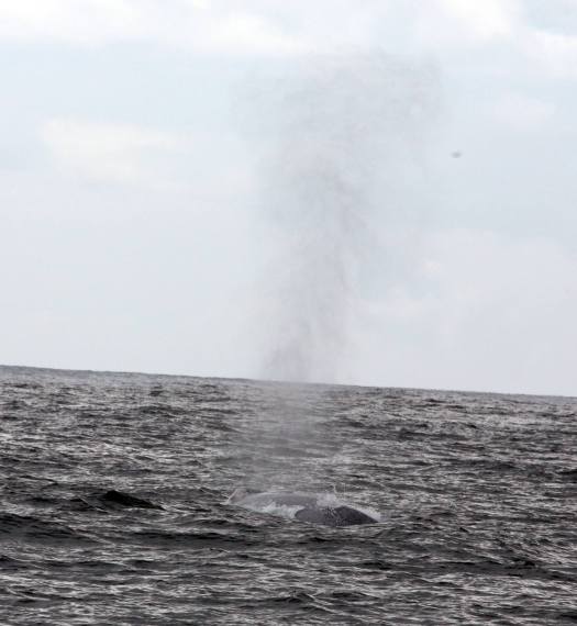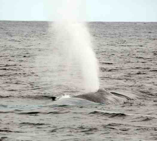Heading back to Faial, the vigia informed us a blue whale was in the vicinity so we changed direction and before long we spotted its signature majestic high blow, followed by what always seems like a never-ending spray off the animalโs back. This whale was travelling at such a high speed that our boat could not keep up. What a memorable sighting! Four cetacean species in one day for this group. Clearly, we are off to a good start!