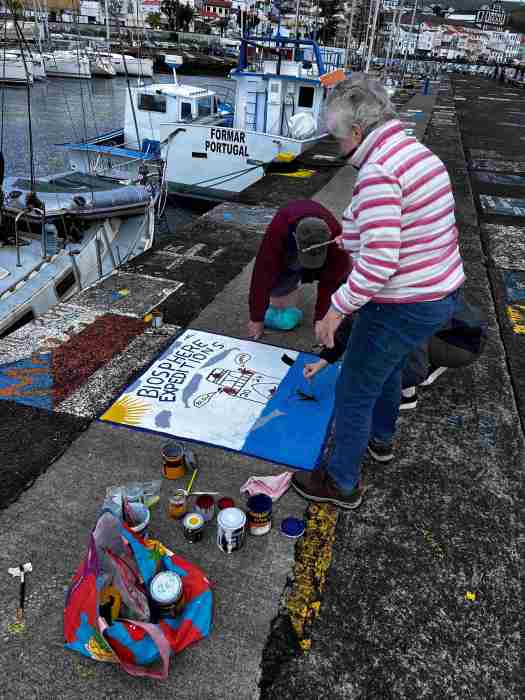 We also used our two days ashore to honour a longstanding tradition in Horta: the vibrant paintings on the breakwater in the harbour. Trans-Atlantic sailors initiated this tradition many years ago, believing it would ensure safe passage to their next destination. We hope the same holds true for our expeditioners departing this morning in rough weather conditions. Biosphere Expeditions is grateful for your hard work and dedication to cetacean citizen science, with lots of good humour and an excellent team spirit. Obrigada!