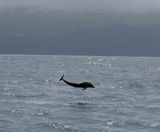Friday the sun came out at last and as we circumvented Faial, there were no fewer than seven common dolphin encounters and two loggerhead turtles. We also engaged in a two-hour sighting of a pod of sperm whales who were again socialising at the surface. Later we encountered striped dolphin for the first time this season. A group of 300 with at least 20 calves travelled by leaping quite high out of the water. The team named them โThe Flying Dolphins.โ What a spectacular sight!