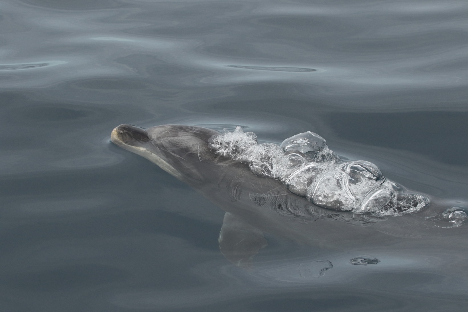 The Risso’s dolphins made another graceful appearance and of course on this last day, the bowriding common dolphins had to be present as well. On our way back, we had our goodbye sighting of this year’s expedition: a large group of bottlenose dolphins jumping on the horizon and then coming closer and displaying all their grandeur near the boat, leaving us with a sunset in the background. It could not have been more perfect.