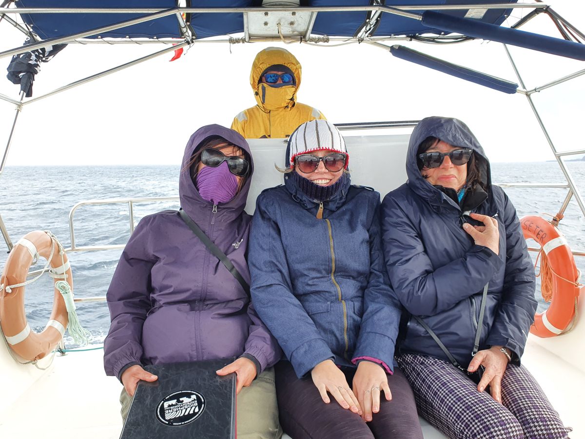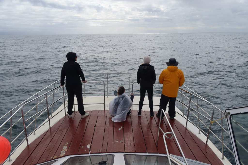 After the training was completed, the weather became more challenging for Tuesday afternoon’s test run on the water. Despite the conditions, within four hours we’d covered 57 kilometres, recorded common and bottlenose dolphins and three sperm whales (including a calf displaying suckling behaviour). The team did well on the data recording, especially Tracy, who is in danger of earning herself a permanent slot as POPA master.