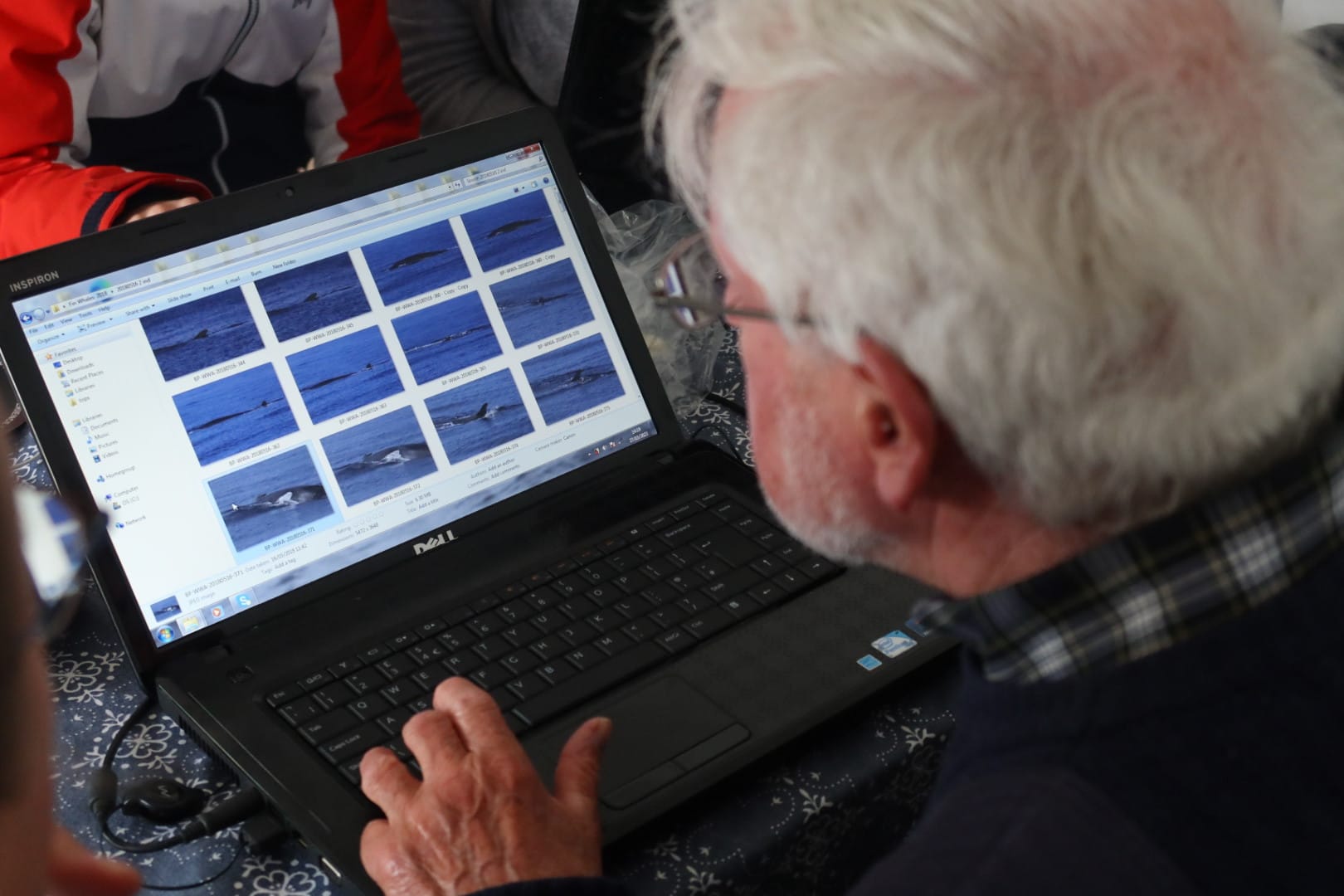 Cetaceans are no easy species to study, given that they spend most of their time under the water surface. Yet photographs of dorsal fins of dolphins and tails (flukes) of whales allow scientists to distinguish individuals. These can then be matched when photographed elsewhere along their migration route or as part of their movements within the Azores archipelago. Photo-IDs may sit for many years in a database before being matched, hence cetacean research and spatio-temporal monitoring requires long-term data collection and processing to reveal meaningful patterns – a perfect task for a citizen science expedition. In the long run – and conservation science is a long game – this gives relevant information on priority areas to protect to safeguard the many whale and dolphin species present in the Azores. Indeed the archipelago is considered a hotspot for both resident and migrating cetacean species.