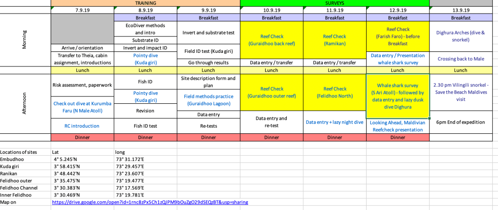 You can see our itinerary here and I hope you have all swotted up on the Reef Check methodology. The more effort you put in now, the easier it will be during the intense knowledge dump that will happen during the first couple of days. Don’t forget either that you must complete the online immigration formprior to departing for the Maldives.