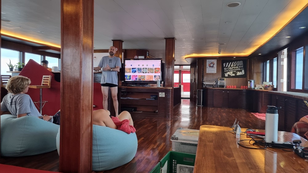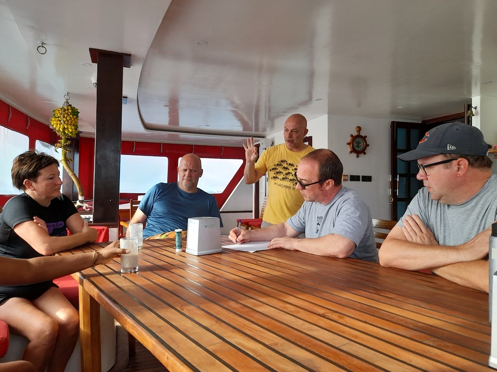 Here are a few names to remember: Most importantly there’s Dileepa (cook), Randika (waiter), Mox, Antoine, Lorae (dive guides), Lukas (deck hand), Jean-Luc (scientist), Matthias (expedition leader), as well as a few other crew who are here to make sure the expedition runs smoothly.