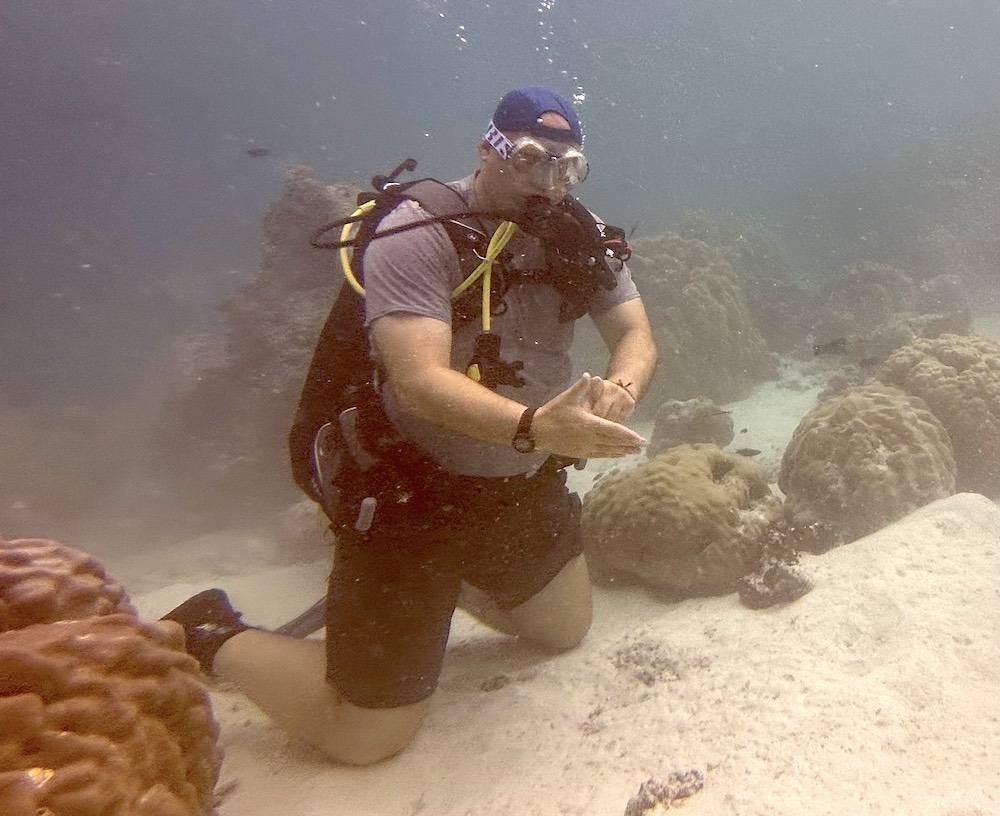 We have found some cause for hope for previously badly affected sites, mainly from the last 2016 mass bleaching event. Sites that are grazed by herbivorous fish and have not been colonised by corallimorphs have partially recovered since 2016. True, the recovery is slow (cue the problems from paragraph 1), but there is some recovery. Baby corals are taking a foothold, surviving on the skeletal corpses of once great boulder corals, finding a space for new life in between dead coral branches, clinging on and growing. But those reefs that have been colonised by corralimorphs are getting worse. They are or have phase shifted from coral to corralimorph reefs, blanketed by nothing but these fleshy creatures, which nothing eats and which take over everything. Once the brown carpet has taken over, nothing is left – no fish, no invertebrates, no corals. This has happened in other parts of the world, for example in Bermuda, where few coral reefs are left.