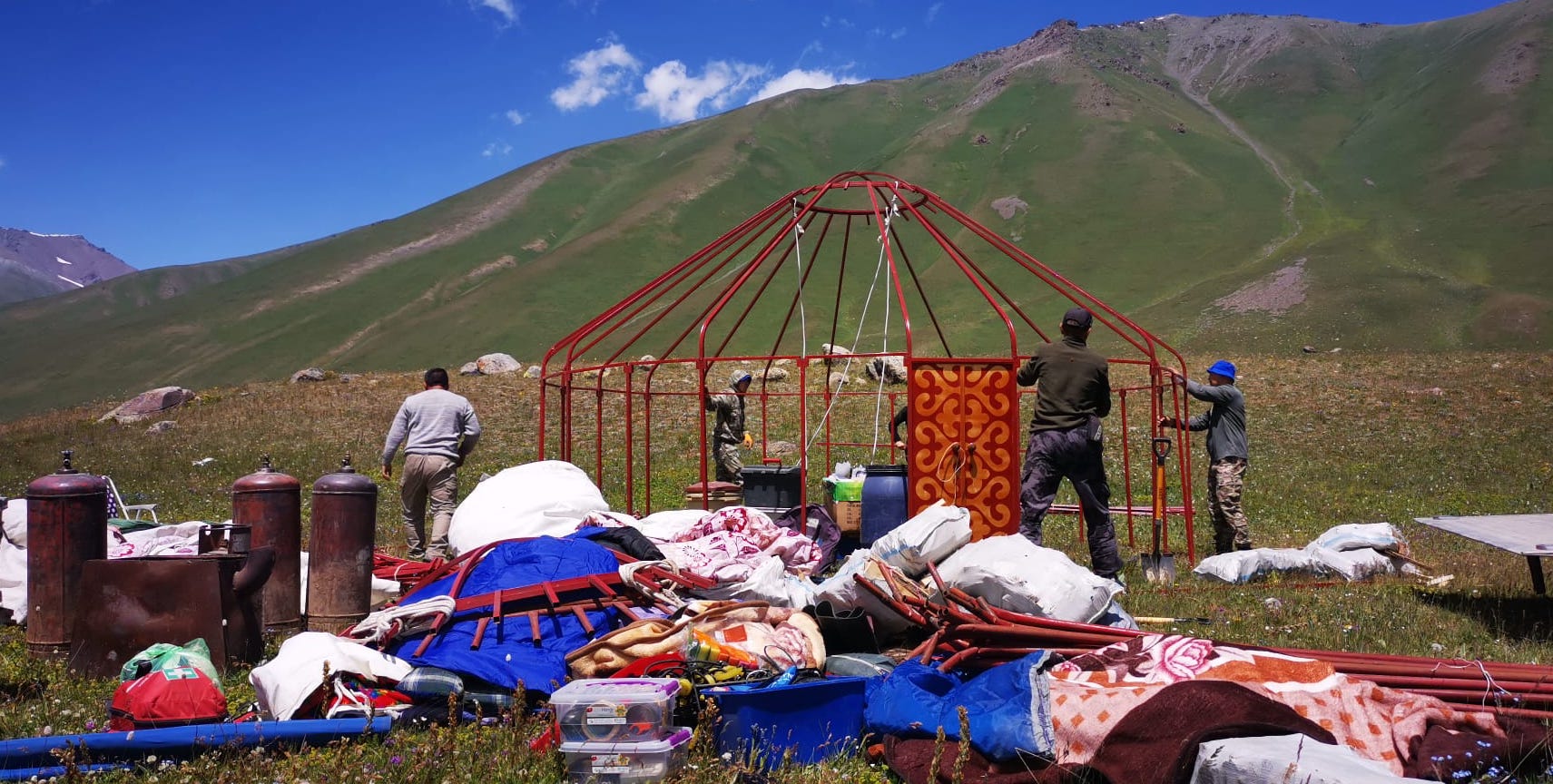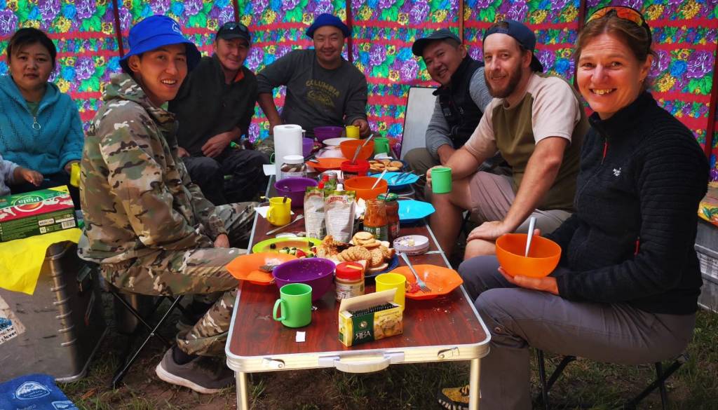 We have had a few rainy cold days – this is the high mountains after all. But everyone has brought suitable clothing as recommended in the expedition kit list so our work continues whatever the weather. And the wood burner in our ‘drying’ yurt has proved very welcome when we return to base camp. An especially stormy night ripped a couple of our tents and we also suffered tent damage from a wayward animal. But we have enough spare tents, so no problem.