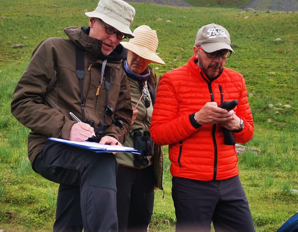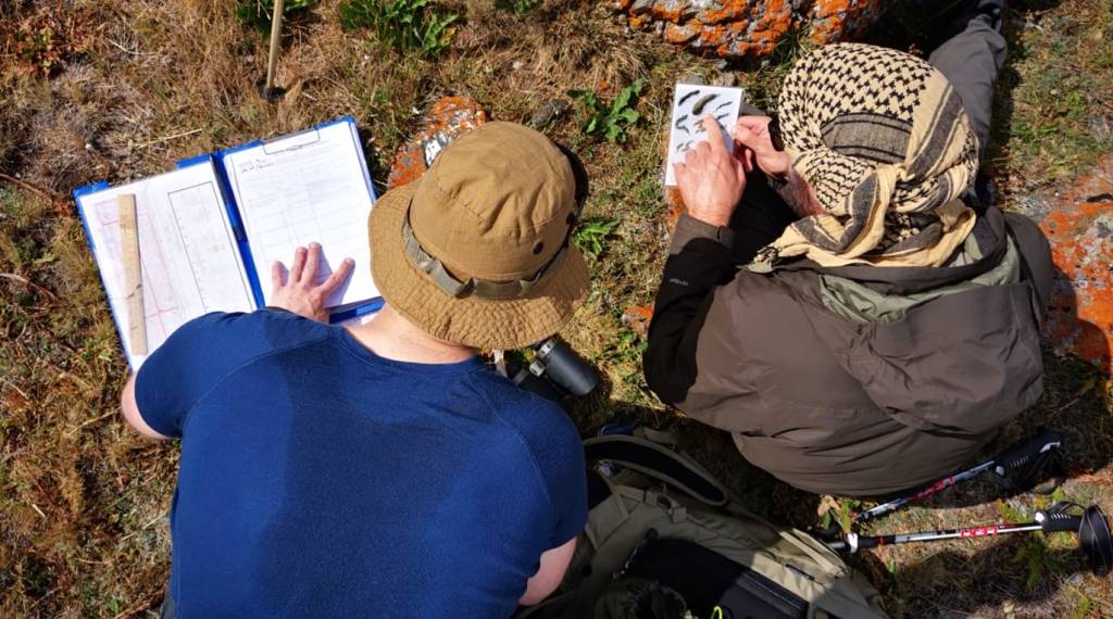 A new element of our research this year is a survey of the local shepherd families about the potential for ecotourism, which might offer a new source of income for local people, give an incentive to protect and encourage wildlife and perhaps in time allow a reduction in livestock numbers in the valley, which are in competition with the ibex and the argali. The interviews we have been carrying out are intended to assess interest in the idea. So far, volunteer citizen scientists Margot and Kathy have been our chief interviewers, accompanied by our scientist Taalai as interpreter. This team has been welcomed with wonderful hospitality by the women and men they have approached, and ten interviews have now been completed, with a great variety of responses. The great majority of people are in favour of small-scale ecotourism in the valley and at least one respondent said he would give up shepherding altogether in favour of an income from ecotourism.