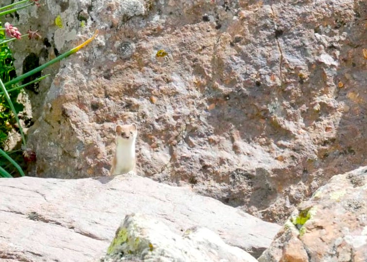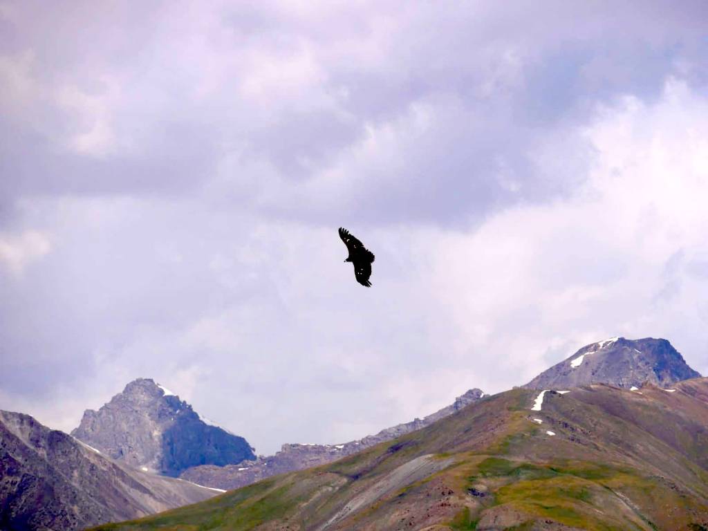 Vultures are not part of our snow leopard expedition, but they are one of the more dramatic creatures that we have seen on this expedition. Our valley seems to have an unusually high population of large birds of prey. We see bearded vultures, golden eagles, buzzards and other raptors every day, often flying or perched on a rock very close to us. On group 2 we have also seen badgers – smaller, lighter coloured and less nocturnal than their European cousins, a mysteriously tame weasel and other mustelids, as well as a host of smaller bird species – wagtails, warblers, larks and choughs have all been seen and identified. The choughs are especially a welcome accompaniment to our high mountain walks, with their acrobatic flight and musical calls.