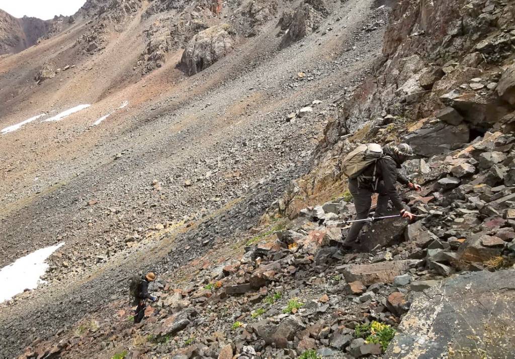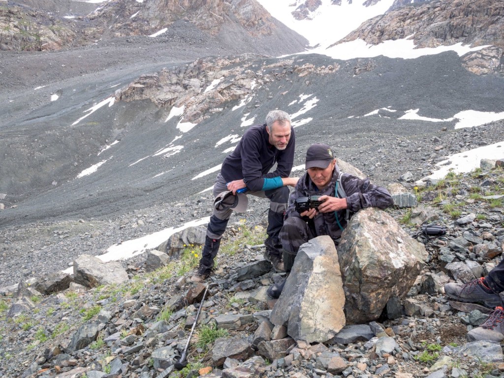 Most days we spend on hikes, slowly surveying many of the side valleys, peaks and ridges, looking for any evidence of the species we are researching – snow leopards and their main prey species (ibex, argali, marmots and snowcocks). Most days our small teams find something to report – marmots are relatively common on the lower slopes. Footprints or scat of ibex are found on the higher slopes and sometimes – always to great excitement – we see a herd of ibex walking along a ridge or up a slope. All of these findings are photographed and recorded on datasheets according to our research protocols.