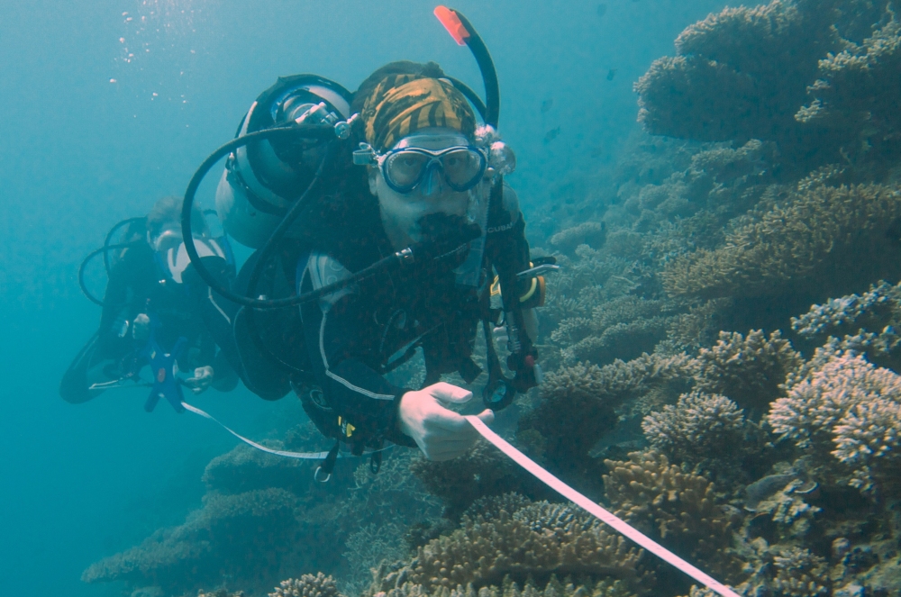 Gargoyle Cliffs was the site of our mock survey, and with a strong surge buffeting us, the team collected its first data set. It was more challenging than Nadege and Kristoffer, who were undertaking the fish survey, had imagined it would be, with hundreds of snappers to count whilst avoiding being smashed against the corals!