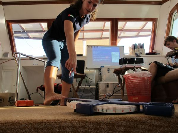 We’ve spent the last days training our team up to be Reef Checkers and so far they have passed with flying colours as one of the most capable and relaxed teams, sitting in their lecture, hardly even blinking an eyelid as the Carpe Diem had to plough through a storm with the waves crashing against the portholes.