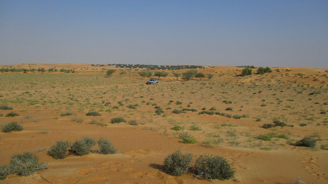 We’ve counted hundreds of oryx and gazelles, thousands of ghaf trees and broom bushes, seen beautiful Pharao eagle owls swoop up in the air on their silent wings, a red fox flitting across the dunes, a red streak against the wavy ocre of the desert, agamas burying themselves in the sand, gerbils racing for their lives in a white dash across the tracks, and the sun set and rise in all its fiery beauty as we get on with our jobs.