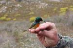 On capturing the first individual at Blue Hill Nature Reserve, in the Western Cape, Dr. Lee said ‘I am delighted. I have been mist-netting and ringing birds since 2011, with over 7000 birds caught, and this was the first Hottentot buttonquail, not just caught by me, but by anyone. Clearly it wouldn’t have been possible without the collective efforts of the Biosphere Expeditions team’.